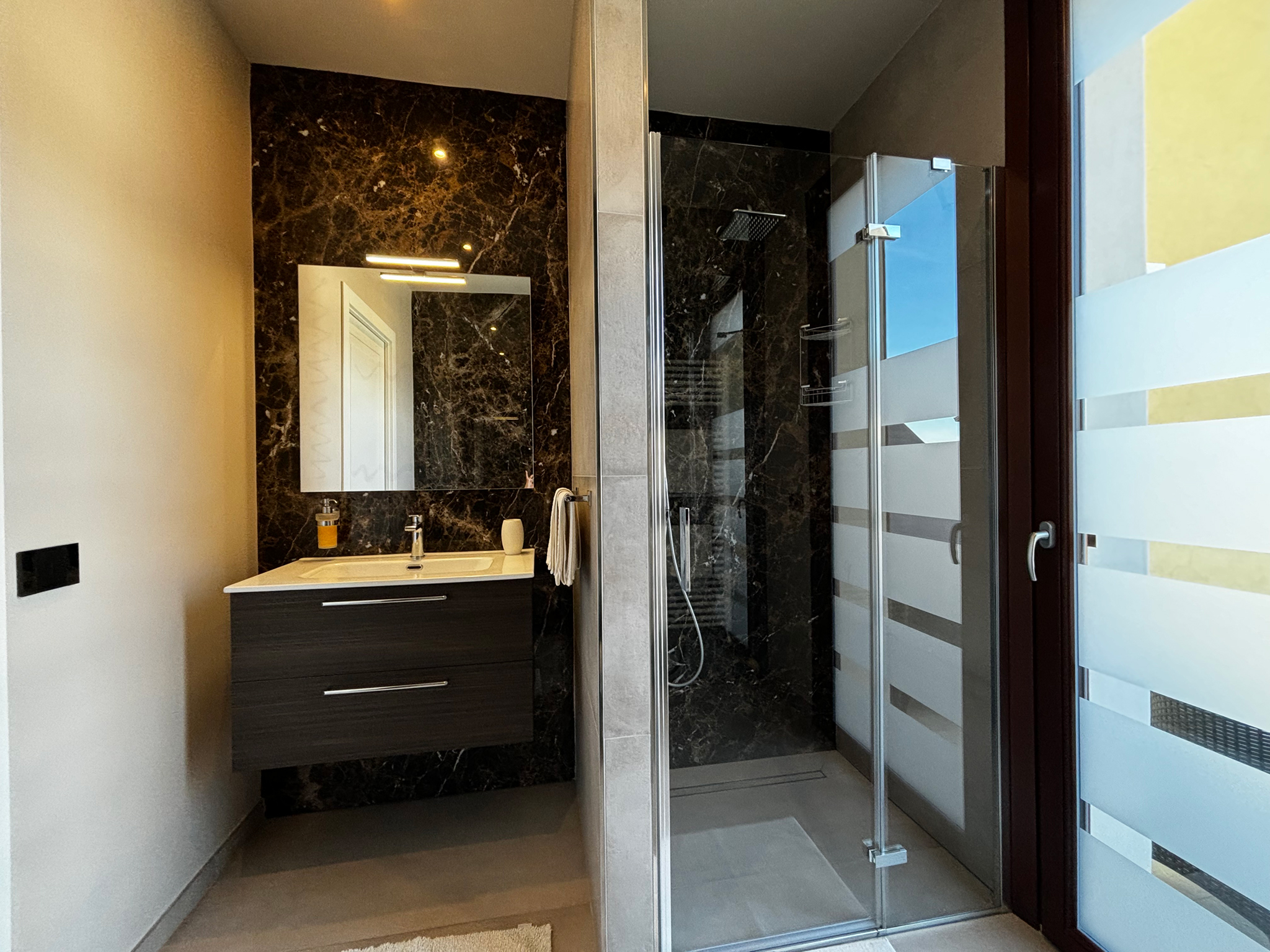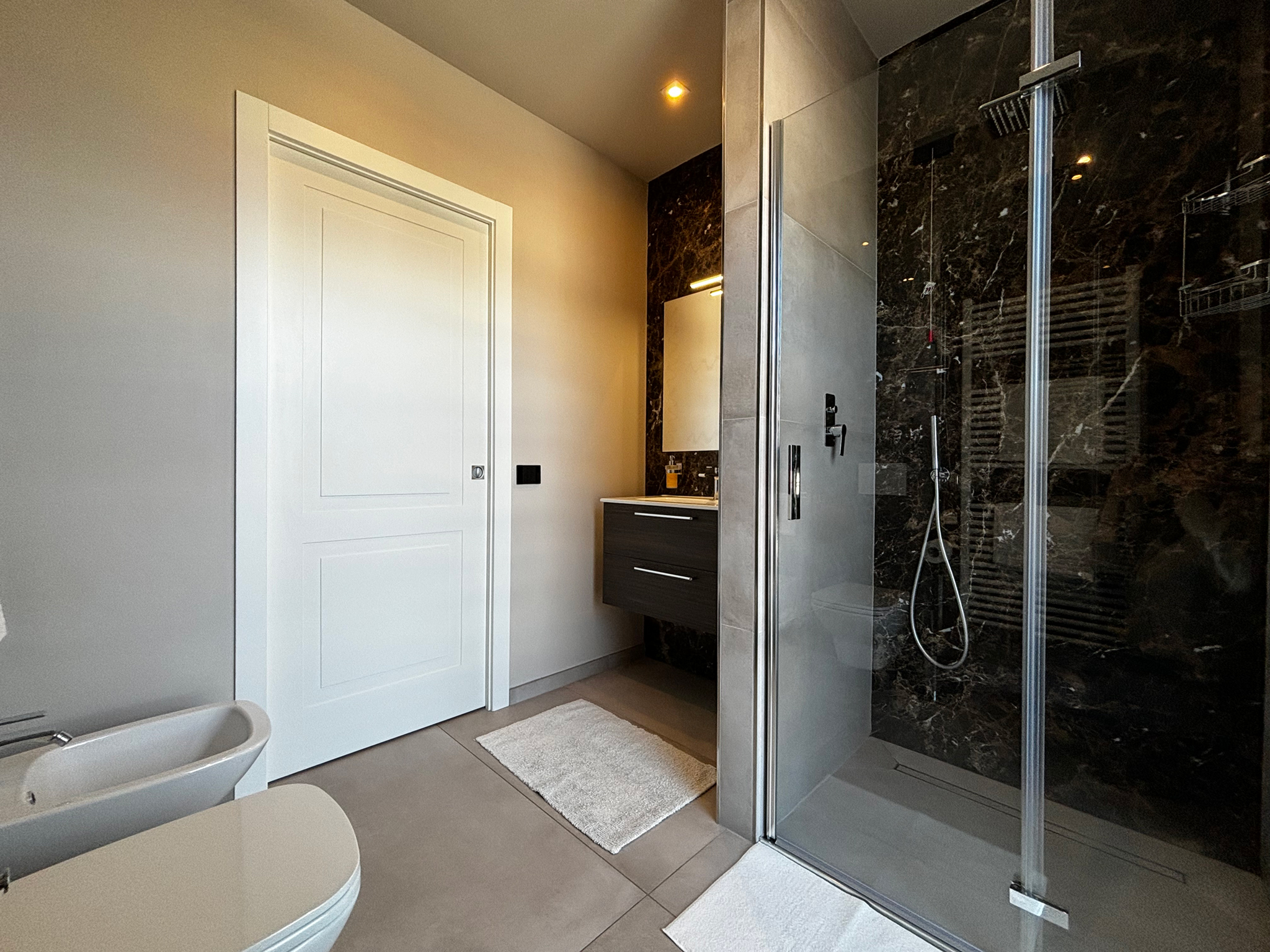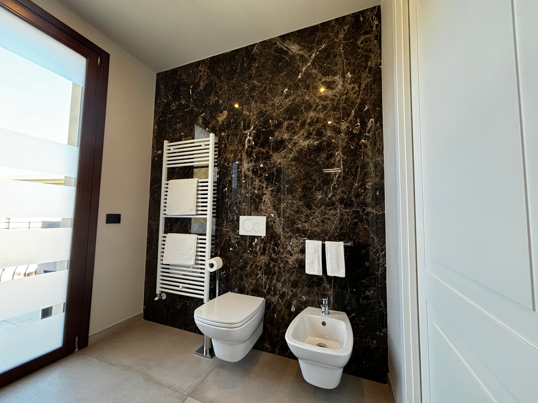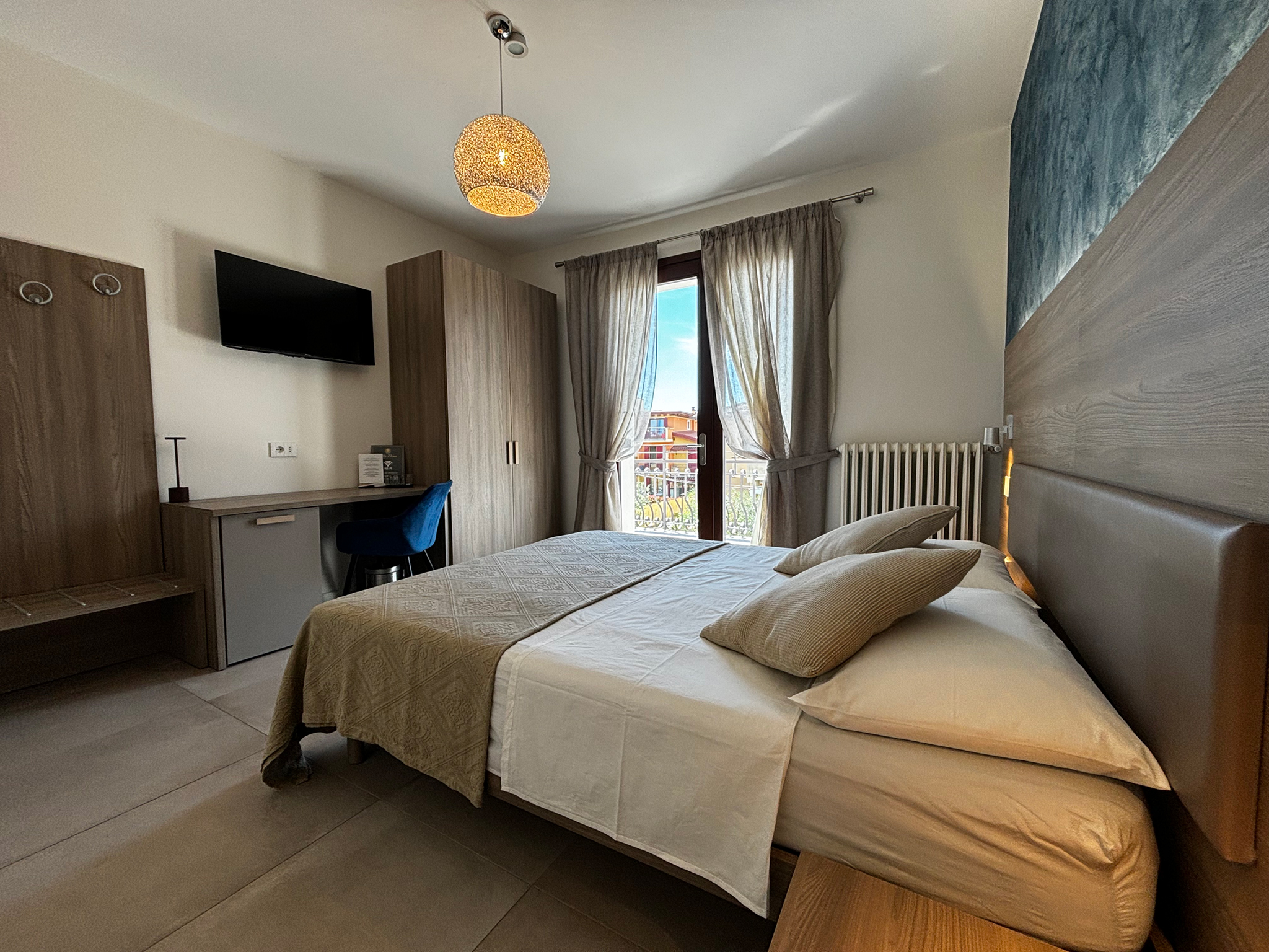 Camera matrimoniale di 25 metri quadrati con bagno e balcone privato.